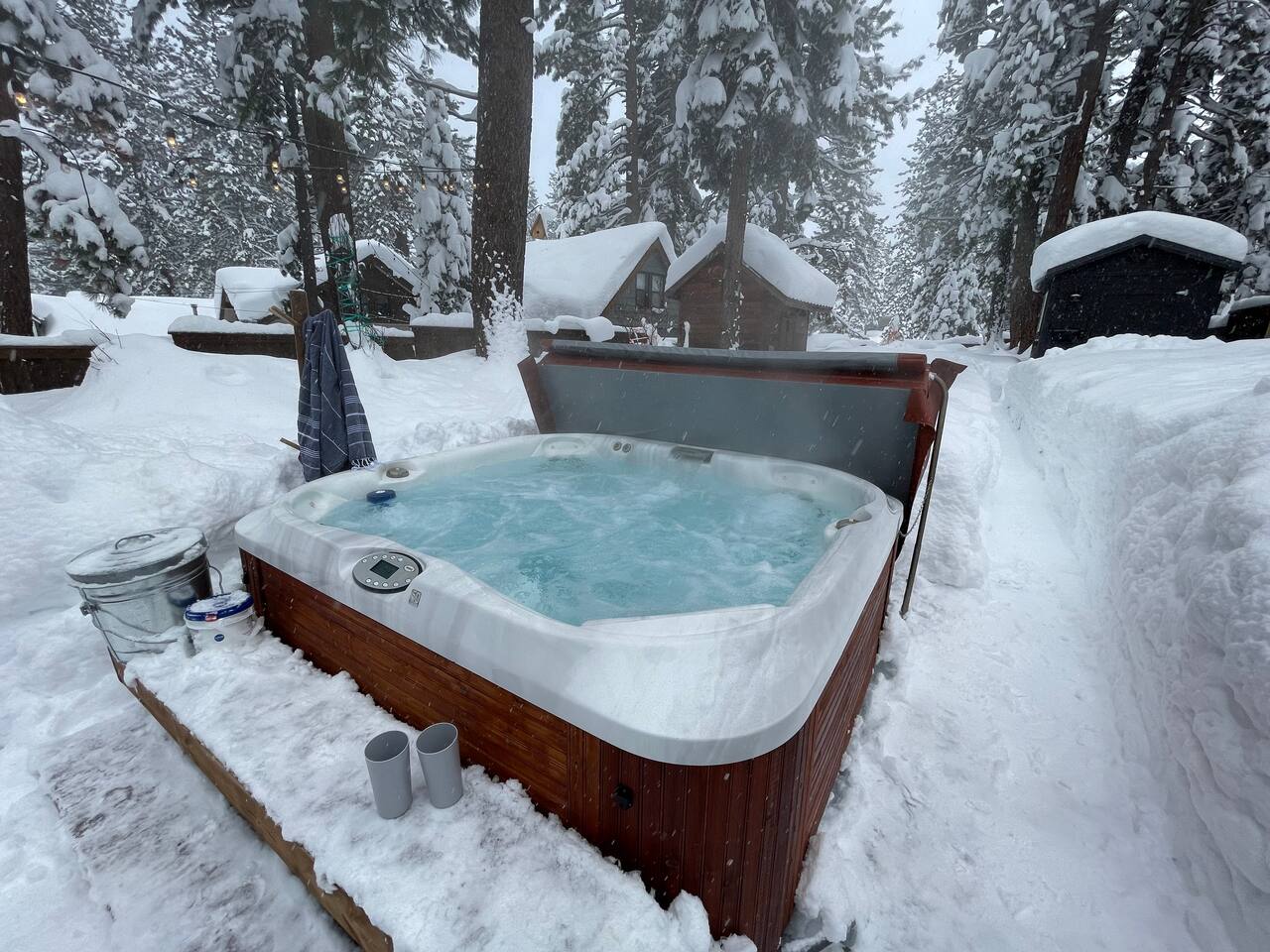 12% Placer County Occupancy Tax is collected through Airbnb. Please note the tax in your cost breakdown. Tahoe has the BEST water! Not just in our gorgeous lake but also coming straight out of our taps. The water is clean, pure and is literally a gold medal national winner for Best Tap Water at the Great American Water Taste Test. (seriously, that's a thing ha!). So ditch the plastic and bring along a refillable bottle for the best of the best water in the country. Ring camera at front and back doors. Exterior only. The camera at the back door also overlooks most of the yard and hot tub. They will be recording during the reservation.