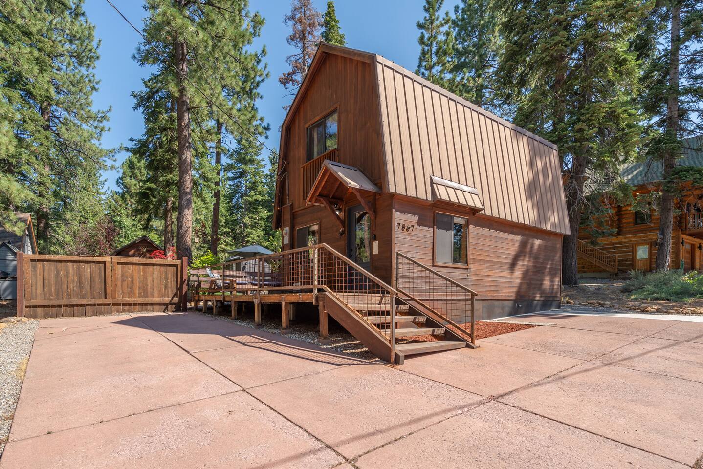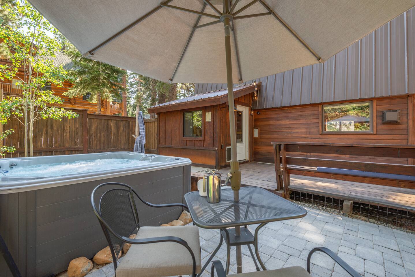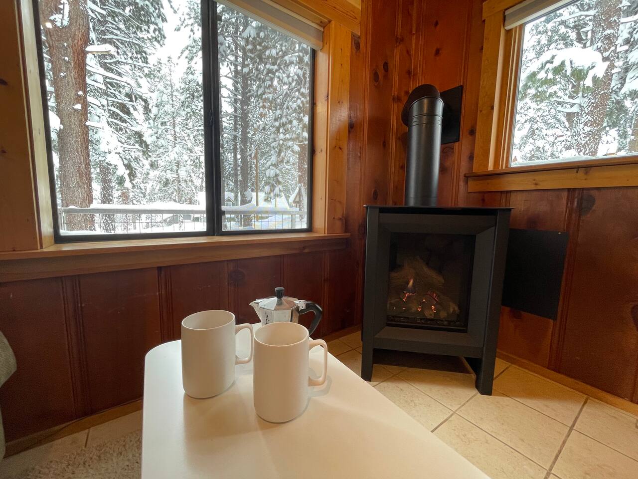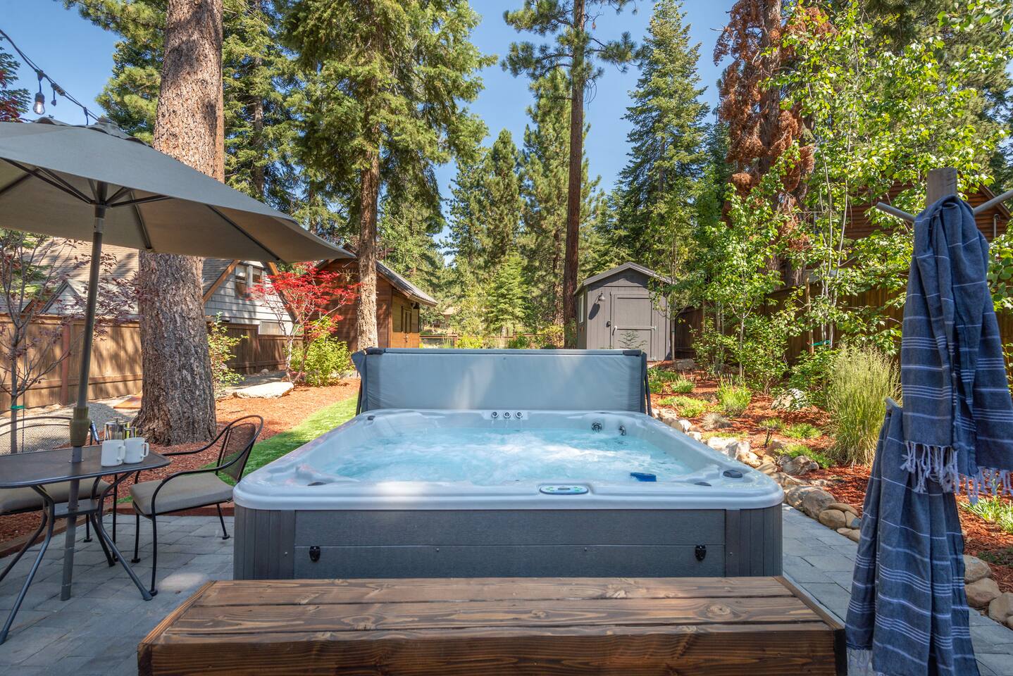 Our family lived in this home for 3.5 years as we remodeled it to prepare it for you, our guest. So there are the luxuries of a vacation rental with the comforts of a thoughtfully updated home. It was originally built in 1947 as a summer cabin on the golf course. Through landscaping and thoughtful updates, this home has been restored to its glory as an enjoyable cabin escape. The quarks of a small cabin are still there, such as VERY uneven floors and narrow staircase, but the comforts of modern living are tucked throughout, including an insulated Work-From-Home office Shed with full desk and cozy infrared space heater. Enter via the front door into the living room, or come around the back to the Mud Room with heated tile floors, washer and dryer, chest freezer, bench, custom shoe rack and plenty of outlets for your boot warmers. Enjoy the cozy living room with Samsung Frame TV (with high speed internet and ACCESS to all your favorite apps. You supply your own log ins, however) and modern gas stove (new in 2020). Dining at the West Elm table is most comfortable for two, but we also supply 2 folding chairs so that 4 people can dine together and a leaf for even more elbow room. The kitchen was fully remodeled in 2019 with quartz counters, full size dishwasher, gas range and giant toddler-bathtub-sized stainless steel sink. Custom uplighting in the open shelving allows you to show off your best wine or whiskey bottles. The under-counter double beverage fridges offer the same capacity as a normal sized fridge, but the small hassle of bending over is the trade off for wide open counter tops for pleasurable cooking prep. Please note that these refrigerators are technically beverage fridges, so they only get down to 39 degrees. They will keep your food safe to eat, but they will not keep veggies crisp as long as a traditional residential fridge will. We are a short walk to Safeway, so we recommend only buying the food you need for a few days at a time. The stairs to the second floor are narrow, but they have been carpeted for comfort and safety. Upstairs you will find both Queen bedrooms and a half bath we lovingly call a "luxury airline bathroom". It is small, but efficient and handy to have a toilet and sink upstairs near the bedrooms. Each room has a queen bed outfitted in comfortable linens. One bedroom has a TV, the other has a full glass sliding door to enjoy views of the snow falling in the neighborhood. Both rooms have blackout curtains for your comfort. Please note that the main heat source is the gas stove downstairs with the heat traveling up through the staircase into the bedrooms. One bedroom has a built in space heater so it can be heated when the door is closed, but the second room does not and will not be heated if the door is closed over night. The only full bathroom is found downstairs and while it is clean and functional, our little bathroom is where the 1940's really shine in this house. The shower is very small and can be a tight fit. Please see the photos in our listing of the shower to decide if it's a good fit for you. The handle is extended well overhead and the shampoo/conditioner/body wash are mounted to the wall to allow the maximum amount of space. We do have an instant hot water heater so at least you can take a nice long hot shower and won't use it all up for your housemates. The yard with hot tub, synthetic turf, putting green, dining area and gas fire pit with Adirondack chairs are a sight to behold. The fire pit and furniture is put away in winter, but we bring it back out as soon as the snow melts. Landscaping and fully enclosed fence were installed in the spring of 2021. Market lights hang over the hot tub for evening soaks, or shut them off for a sweeping view of stars. Please do not use the hot tub after 9pm quiet hours begin. The lawn is synthetic so it is guaranteed to be green and beautiful for your visit (or white and snowy!). The back portion of the yard is decomposed granite with a beautiful view of the 3rd hole and ladies tee of Brockway Golf Course as well as dining table, putting green and gas fire pit with Adirondack chairs (all put away in winter time when there is snow on the ground). The golf course is private property, but there is a gate for you to use if you are a guest of the golf course golfing and want to run into the property for a fresh cocktail :). Our private 3 hole putting green is the perfect spot to practice your putts before walking down to the nearby clubhouse for your tee time. Please note that we do not have a BBQ grill at this property. Also out in the yard is a large insulated Work-From-Home Shed Office. This space is an excellent spot to get "away" and get some work done. There is a large corner desk, comfortable office chair, space heater, wifi extender and plenty of outlets. In the summer, there is no Air Conditioning (pretty much anywhere in Tahoe, actually) so all your neighbors will have their windows open to enjoy the cool night air. That means that every whisper and sound you make outdoors at night carries into everyone's windows. Please respect quiet hours in our sweet, quiet neighborhood. There are fans in each bedroom and the home has new insulation in the roof so it will hold the cool night air through the daytime if you close the insulated curtains first thing in the morning. This same insulation helps keep the cabin cozy and snug through the winter months. We also provide HEPA air filters for the unfortunate "smoke season" we often experience in California. For those few weeks every year where it actually gets into the 80's during the day, it is still cool in the evenings, so the recommendation for Tahoe Cooling is to open all of the windows and shades at night to cool the house down, then close them in the morning to "trap" the cool air inside the house for the day. DOGS (please note: due to allergies we cannot accept any other type of pet): We welcome your pups here, but since this is first and foremost a house