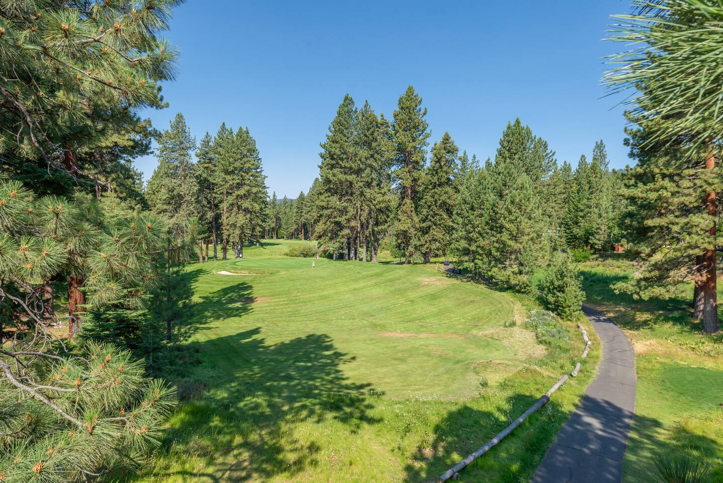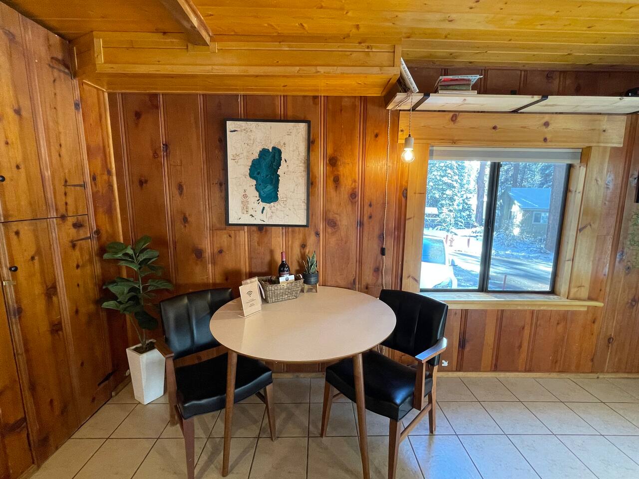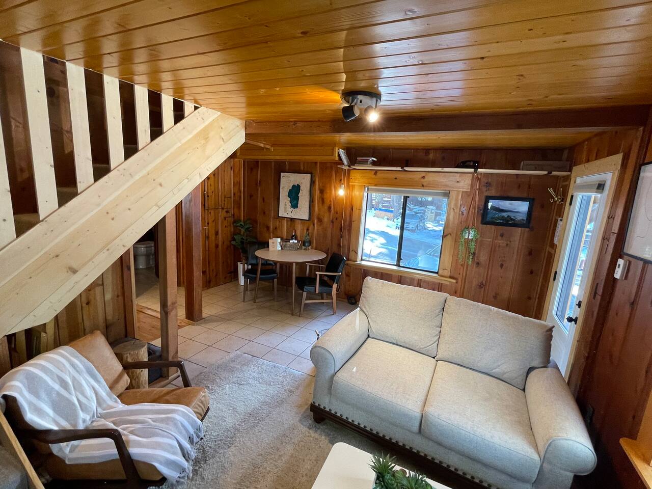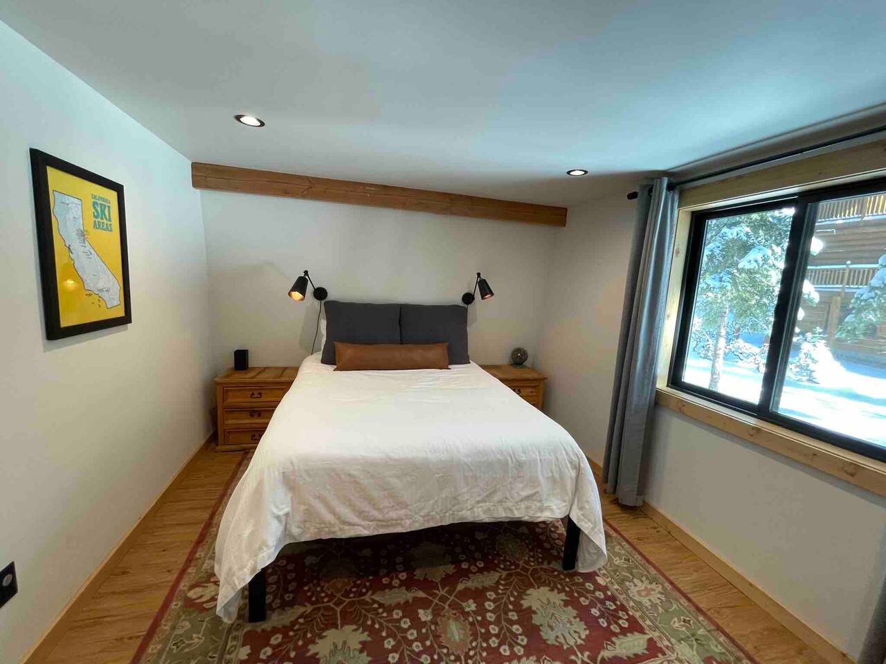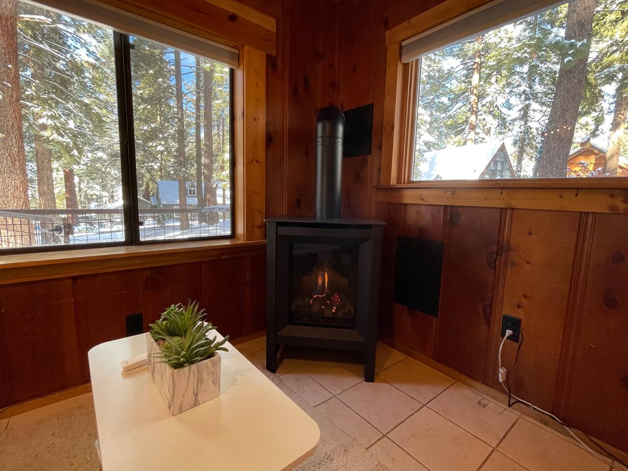 Our family lived in this home for 3.5 years as we remodeled it to prepare it for you, our guest. So there are the luxuries of a vacation rental with the comforts of a thoughtfully updated home. It was originally built in 1947 as a summer cabin on the golf course. Through landscaping and thoughtful updates, this home has been restored to its glory as an enjoyable cabin escape. The quarks of a small cabin are still there, such as VERY uneven floors and narrow staircase, but the comforts of modern living are tucked throughout, including an insulated Work-From-Home office Shed with full desk and cozy infrared space heater. Enter via the front door into the living room, or come around the back to the Mud Room with heated tile floors, washer and dryer, chest freezer, bench, custom shoe rack and plenty of outlets for your boot warmers. Enjoy the cozy living room with Samsung Frame TV (with high speed internet and ACCESS to all your favorite apps. You supply your own log ins, however) and modern gas stove (new in 2020). Dining at the West Elm table is most comfortable for two, but we also supply 2 folding chairs so that 4 people can dine together and a leaf for even more elbow room. The kitchen was fully remodeled in 2019 with quartz counters, full size dishwasher, gas range and giant toddler-bathtub-sized stainless steel sink. Custom uplighting in the open shelving allows you to show off your best wine or whiskey bottles. The under-counter double beverage fridges offer the same capacity as a normal sized fridge, but the small hassle of bending over is the trade off for wide open counter tops for pleasurable cooking prep. Please note that these refrigerators are technically beverage fridges, so they only get down to 39 degrees. They will keep your food safe to eat, but they will not keep veggies crisp as long as a traditional residential fridge will. We are a short walk to Safeway, so we recommend only buying the food you need for a few days at a time. The stairs to the second floor are narrow, but they have been carpeted for comfort and safety. Upstairs you will find both Queen bedrooms and a half bath we lovingly call a "luxury airline bathroom". It is small, but efficient and handy to have a toilet and sink upstairs near the bedrooms. Each room has a queen bed outfitted in comfortable linens. One bedroom has a TV, the other has a full glass sliding door to enjoy views of the snow falling in the neighborhood. Both rooms have blackout curtains for your comfort. Please note that the main heat source is the gas stove downstairs with the heat traveling up through the staircase into the bedrooms. One bedroom has a built in space heater so it can be heated when the door is closed, but the second room does not and will not be heated if the door is closed over night. The only full bathroom is found downstairs and while it is clean and functional, our little bathroom is where the 1940's really shine in this house. The shower is very small and can be a tight fit. Please see the photos in our listing of the shower to decide if it's a good fit for you. The handle is extended well overhead and the shampoo/conditioner/body wash are mounted to the wall to allow the maximum amount of space. We do have an instant hot water heater so at least you can take a nice long hot shower and won't use it all up for your housemates. The yard with hot tub, synthetic turf, putting green, dining area and gas fire pit with Adirondack chairs are a sight to behold. The fire pit and furniture is put away in winter, but we bring it back out as soon as the snow melts. Landscaping and fully enclosed fence were installed in the spring of 2021. Market lights hang over the hot tub for evening soaks, or shut them off for a sweeping view of stars. Please do not use the hot tub after 9pm quiet hours begin. The lawn is synthetic so it is guaranteed to be green and beautiful for your visit (or white and snowy!). The back portion of the yard is decomposed granite with a beautiful view of the 3rd hole and ladies tee of Brockway Golf Course as well as dining table, putting green and gas fire pit with Adirondack chairs (all put away in winter time when there is snow on the ground). The golf course is private property, but there is a gate for you to use if you are a guest of the golf course golfing and want to run into the property for a fresh cocktail :). Our private 3 hole putting green is the perfect spot to practice your putts before walking down to the nearby clubhouse for your tee time. Please note that we do not have a BBQ grill at this property. Also out in the yard is a large insulated Work-From-Home Shed Office. This space is an excellent spot to get "away" and get some work done. There is a large corner desk, comfortable office chair, space heater, wifi extender and plenty of outlets. In the summer, there is no Air Conditioning (pretty much anywhere in Tahoe, actually) so all your neighbors will have their windows open to enjoy the cool night air. That means that every whisper and sound you make outdoors at night carries into everyone's windows. Please respect quiet hours in our sweet, quiet neighborhood. There are fans in each bedroom and the home has new insulation in the roof so it will hold the cool night air through the daytime if you close the insulated curtains first thing in the morning. This same insulation helps keep the cabin cozy and snug through the winter months. We also provide HEPA air filters for the unfortunate "smoke season" we often experience in California. For those few weeks every year where it actually gets into the 80's during the day, it is still cool in the evenings, so the recommendation for Tahoe Cooling is to open all of the windows and shades at night to cool the house down, then close them in the morning to "trap" the cool air inside the house for the day. DOGS (please note: due to allergies we cannot accept any other type of pet): We welcome your pups here, but since this is first and foremost a house