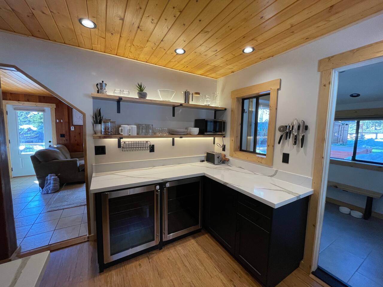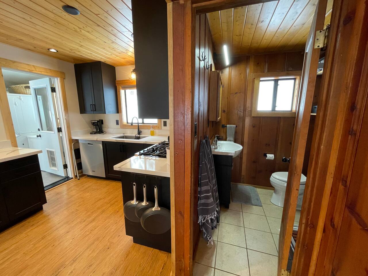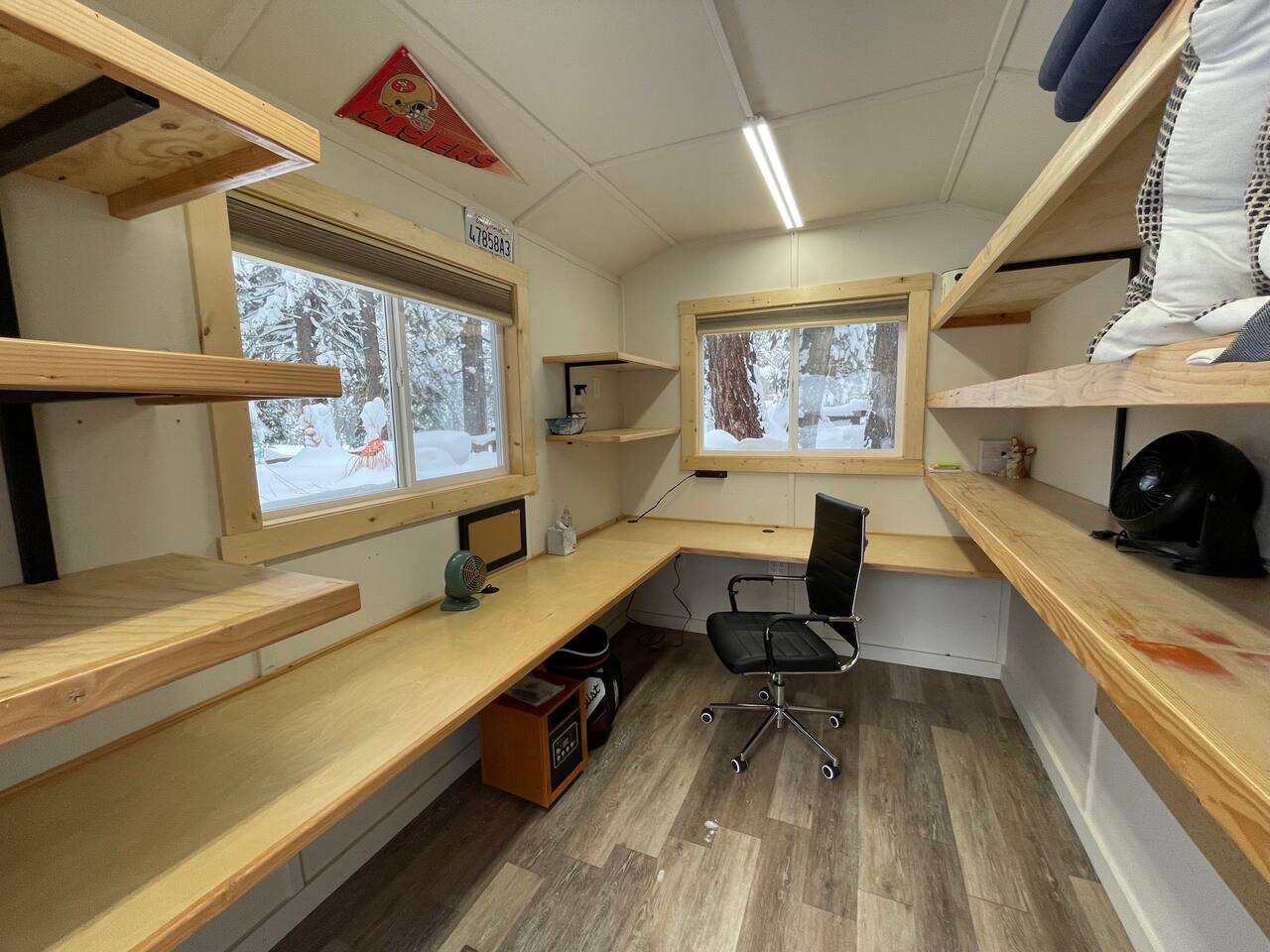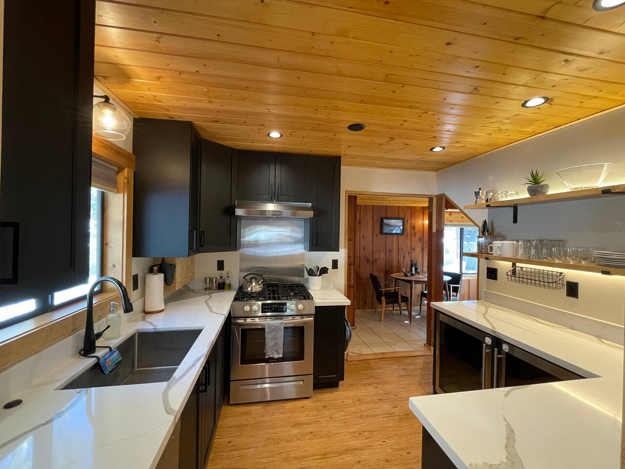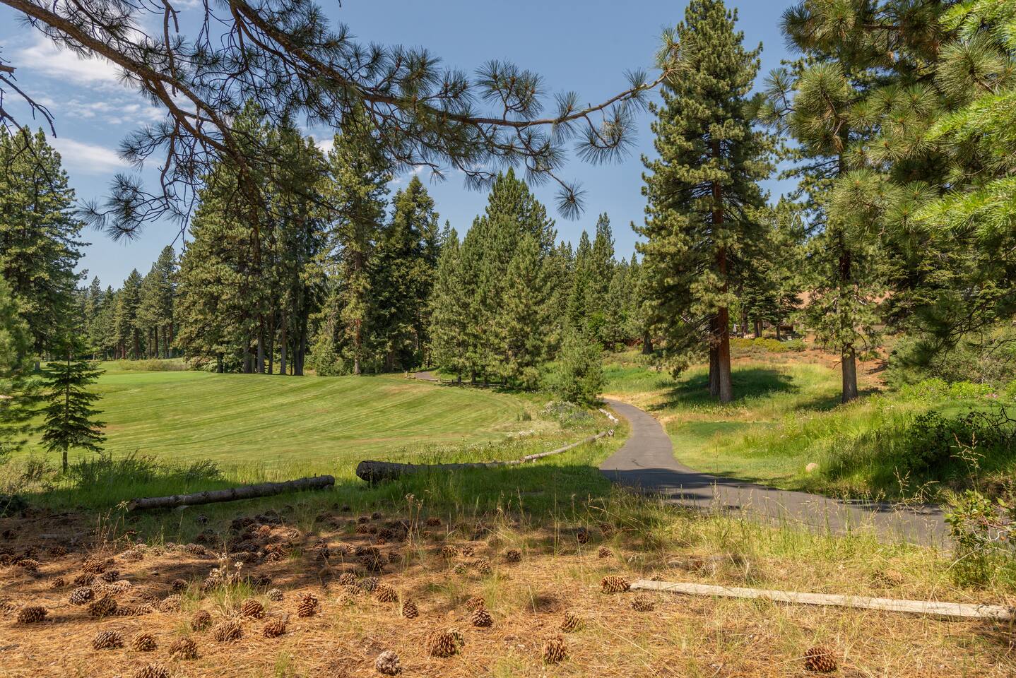 Our family lived in this home for 3.5 years as we remodeled it to prepare it for you, our guest. So there are the luxuries of a vacation rental with the comforts of a thoughtfully updated home. It was originally built in 1947 as a summer cabin on the golf course. Through landscaping and thoughtful updates, this home has been restored to its glory as an enjoyable cabin escape. The quarks of a small cabin are still there, such as VERY uneven floors and narrow staircase, but the comforts of modern living are tucked throughout, including an insulated Work-From-Home office Shed with full desk and cozy infrared space heater. Enter via the front door into the living room, or come around the back to the Mud Room with heated tile floors, washer and dryer, chest freezer, bench, custom shoe rack and plenty of outlets for your boot warmers. Enjoy the cozy living room with Samsung Frame TV (with high speed internet and ACCESS to all your favorite apps. You supply your own log ins, however) and modern gas stove (new in 2020). Dining at the West Elm table is most comfortable for two, but we also supply 2 folding chairs so that 4 people can dine together and a leaf for even more elbow room. The kitchen was fully remodeled in 2019 with quartz counters, full size dishwasher, gas range and giant toddler-bathtub-sized stainless steel sink. Custom uplighting in the open shelving allows you to show off your best wine or whiskey bottles. The under-counter double beverage fridges offer the same capacity as a normal sized fridge, but the small hassle of bending over is the trade off for wide open counter tops for pleasurable cooking prep. Please note that these refrigerators are technically beverage fridges, so they only get down to 39 degrees. They will keep your food safe to eat, but they will not keep veggies crisp as long as a traditional residential fridge will. We are a short walk to Safeway, so we recommend only buying the food you need for a few days at a time. The stairs to the second floor are narrow, but they have been carpeted for comfort and safety. Upstairs you will find both Queen bedrooms and a half bath we lovingly call a "luxury airline bathroom". It is small, but efficient and handy to have a toilet and sink upstairs near the bedrooms. Each room has a queen bed outfitted in comfortable linens. One bedroom has a TV, the other has a full glass sliding door to enjoy views of the snow falling in the neighborhood. Both rooms have blackout curtains for your comfort. Please note that the main heat source is the gas stove downstairs with the heat traveling up through the staircase into the bedrooms. One bedroom has a built in space heater so it can be heated when the door is closed, but the second room does not and will not be heated if the door is closed over night. The only full bathroom is found downstairs and while it is clean and functional, our little bathroom is where the 1940's really shine in this house. The shower is very small and can be a tight fit. Please see the photos in our listing of the shower to decide if it's a good fit for you. The handle is extended well overhead and the shampoo/conditioner/body wash are mounted to the wall to allow the maximum amount of space. We do have an instant hot water heater so at least you can take a nice long hot shower and won't use it all up for your housemates. The yard with hot tub, synthetic turf, putting green, dining area and gas fire pit with Adirondack chairs are a sight to behold. The fire pit and furniture is put away in winter, but we bring it back out as soon as the snow melts. Landscaping and fully enclosed fence were installed in the spring of 2021. Market lights hang over the hot tub for evening soaks, or shut them off for a sweeping view of stars. Please do not use the hot tub after 9pm quiet hours begin. The lawn is synthetic so it is guaranteed to be green and beautiful for your visit (or white and snowy!). The back portion of the yard is decomposed granite with a beautiful view of the 3rd hole and ladies tee of Brockway Golf Course as well as dining table, putting green and gas fire pit with Adirondack chairs (all put away in winter time when there is snow on the ground). The golf course is private property, but there is a gate for you to use if you are a guest of the golf course golfing and want to run into the property for a fresh cocktail :). Our private 3 hole putting green is the perfect spot to practice your putts before walking down to the nearby clubhouse for your tee time. Please note that we do not have a BBQ grill at this property. Also out in the yard is a large insulated Work-From-Home Shed Office. This space is an excellent spot to get "away" and get some work done. There is a large corner desk, comfortable office chair, space heater, wifi extender and plenty of outlets. In the summer, there is no Air Conditioning (pretty much anywhere in Tahoe, actually) so all your neighbors will have their windows open to enjoy the cool night air. That means that every whisper and sound you make outdoors at night carries into everyone's windows. Please respect quiet hours in our sweet, quiet neighborhood. There are fans in each bedroom and the home has new insulation in the roof so it will hold the cool night air through the daytime if you close the insulated curtains first thing in the morning. This same insulation helps keep the cabin cozy and snug through the winter months. We also provide HEPA air filters for the unfortunate "smoke season" we often experience in California. For those few weeks every year where it actually gets into the 80's during the day, it is still cool in the evenings, so the recommendation for Tahoe Cooling is to open all of the windows and shades at night to cool the house down, then close them in the morning to "trap" the cool air inside the house for the day. DOGS (please note: due to allergies we cannot accept any other type of pet): We welcome your pups here, but since this is first and foremost a house
